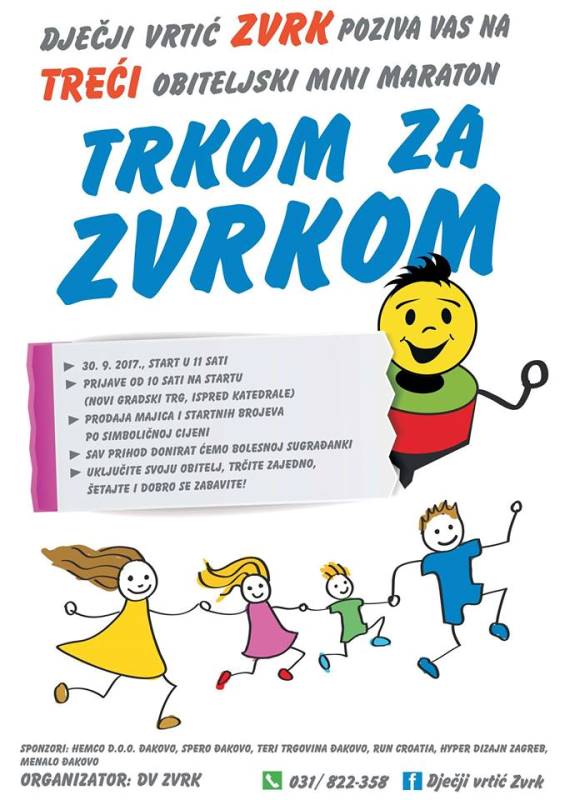Prijave su na samom startu te prodaja majica i startnih brojeva po simboličnoj cijeni, a sav prikupljeni prihod donirat će se bolesnoj sugrađanki. Iz Zvrka poručuju: "Uključite svoju obitelj, trčite zajedno, šetajte i dobro se zabavite".